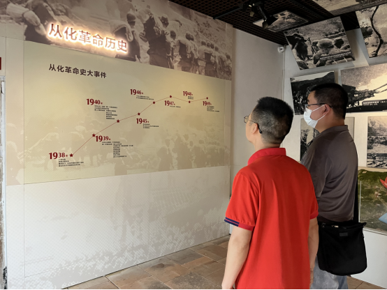 党员同志们相继参观了“星星之火、红旗飘飘、粤北会战、武装斗争、缅怀先烈、铭记历史”等展厅,通过视频、文字、图片、场景还原等,重温了抗战时期和解放战争时期黄沙坑东江纵队从化大队为了民族解放事业浴血奋战的光辉历程,深刻感受革命先烈们为国捐躯的伟大精神,沉浸式的体验让大家深受教育。