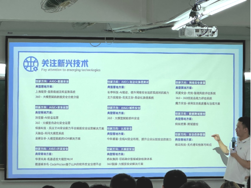 讲座主要围绕“关注新兴技术”和“数据安全”展开。余恒怡总监特别介绍了AIGC(人工智能生成内容)在网络安全中的应用,强调了在自动化漏洞测试、安全运维以及数据安全防护等方面的技术进展。他还列举了多个实际案例,阐述了如何在复杂多变的网络环境中利用先进技术手段进行有效防护。