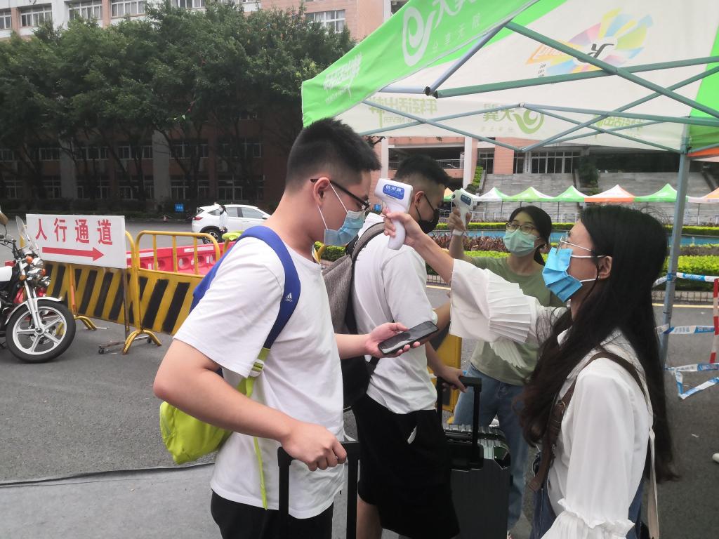 “同学们,欢迎回家!”辅导员老师早早便在工作岗位上等待,绵绵阴雨天气伴随着同学们平安归来的朝气而逐渐放晴。专用通道、有序排队、身份核验、返校信息填报、测温、查验健康码等环节井然有序,高效协调统筹,全程快捷方便,减少等待时间,避免人流密集、高温中暑等情况出现,让员工安全放心返回校园,安心上课。