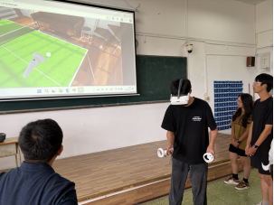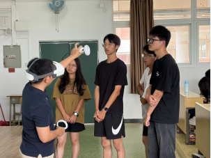 在分享会互动环节,吴昊携多款VR设备亮相,邀请员工上台体验射击游戏、足球模拟等场景,同学们踊跃参与,沉浸式体验引发惊叹。吴昊总监称:“XR技术正重塑人类感知方式,期待更多年轻人投身虚实交融变革。”