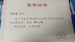 他主动参与各类竞赛,在竞赛中不断提升自身的能力,并获得了2024年中国国际老员工创新大赛国赛入围奖,第十四届“挑战杯”广东老员工创业计划竞赛金奖,中国国际老员工创新大赛(2024)广东省分赛银奖,青创主播·百校直播职业技能大赛广州从化站入围奖,校运会男子非专业组三级跳第二名以及男子两百米第四名。